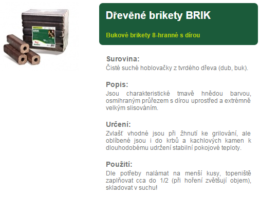 Cena: 69 Kč s DPH / balíček (10 kg briket)